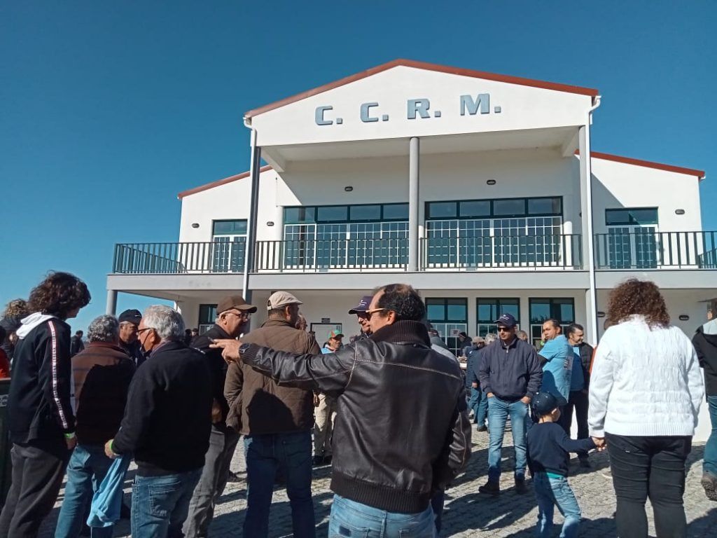 Chegados à emblemática Aldeia do Monte do Bispo, já o largo das festas e o terreno em frente se encontravam preparados para receber a “cavalaria pesada” com estacionamento que desse para todos. Seriam mais de 150 os convivas para o almoço onde tudo decorreu muito organizado e sem stress. Não faltou a animação, para além da concertina que vinha acompanhando a caravana desde o início, agora o grupo de “tocadores” era reforçado com outro fole e um bombo.